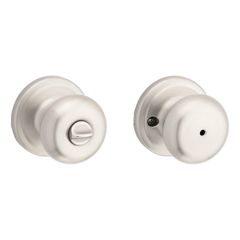 Kwikset Juno Interior Privacy Door Knob with Lock, Door Handle For Bathroom and Bedroom, Satin Nickel Keyless Turn Lock Doorknob, with Microban Protection