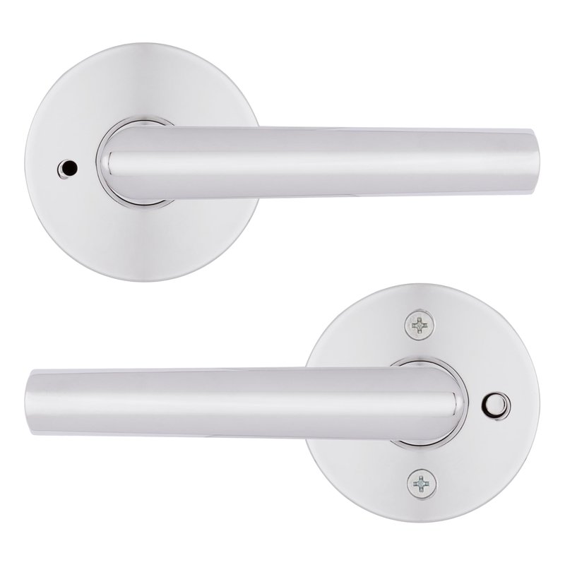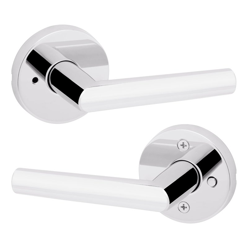 Kwikset Milan Interior Privacy Door Handle with Lock, Door Lever For Bathroom and Bedroom, Polished Chrome Reversible Keyless Push Button Lock Door Lever