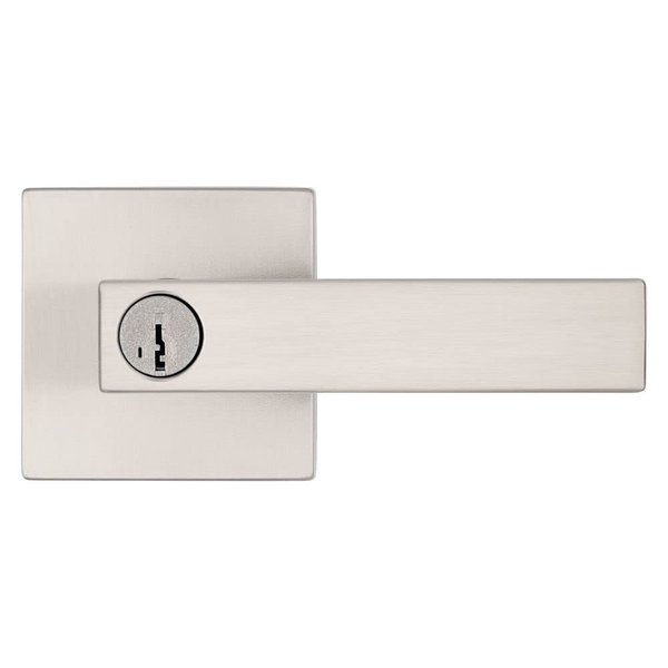 Kwikset Singapore Entry Door Handle with Lock and Key, Secure Keyed Reversible Lever Exterior, For Front Entrance and Bedrooms, Satin Nickel, Pick Resistant Smartkey Rekey Security and Microban