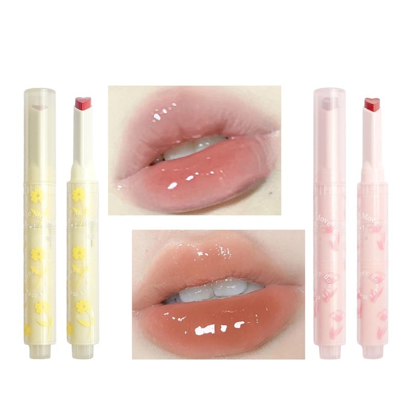KWOLYKIM 2 Colors Jelly Lipsticks Glass Water Hydrating Heart Shaped Lipsticks Moisturizing Tinted Lip Gloss Long Lasting Beauty Makeup Plumping Gloss Lip Glaze Gift for Women Girls