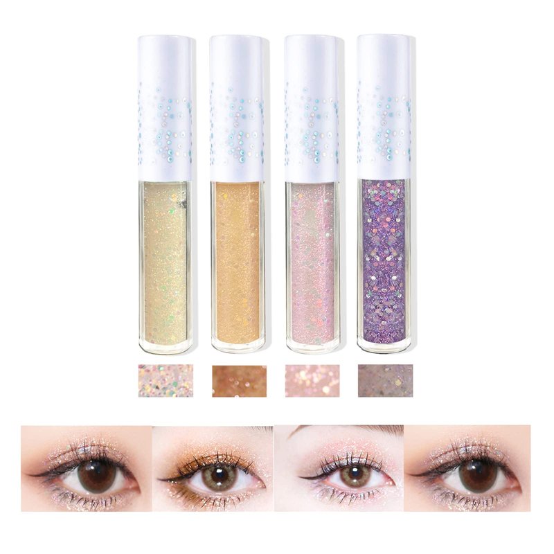 KWOLYKIM 4 Pack Liquid Glitter Eyeshadow, Long Lasting, Quick Drying, Easy to Apply, Loose Bling Glitter Diamond Pigmented Glue for Eye Crystals Makeup (Sparkling Sequins)
