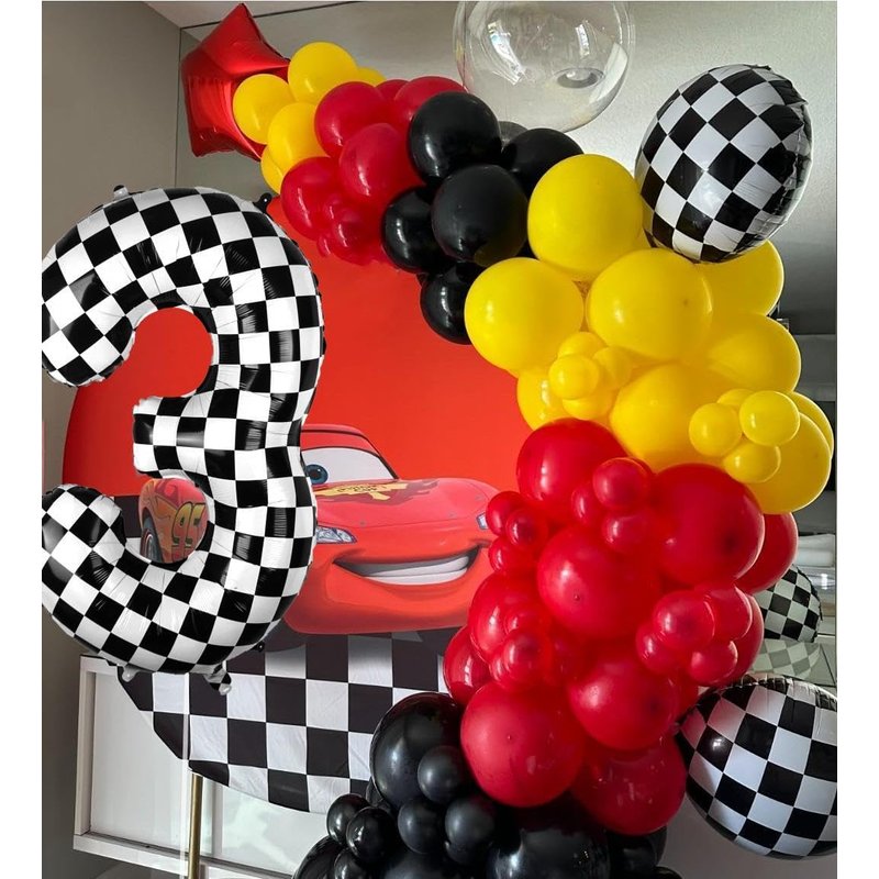 - WIDE APPLICATIONS: Race car number 3 balloon, car party decorations for, boys three years old birthday decorations, racing party decorations, cars birthday decorations, checkered flag birthday decor, bike tires theme birthday decorations, truck theme birthday decorations, black and white balloon arch kits, bachelor party 3rd anniversary party decorations.