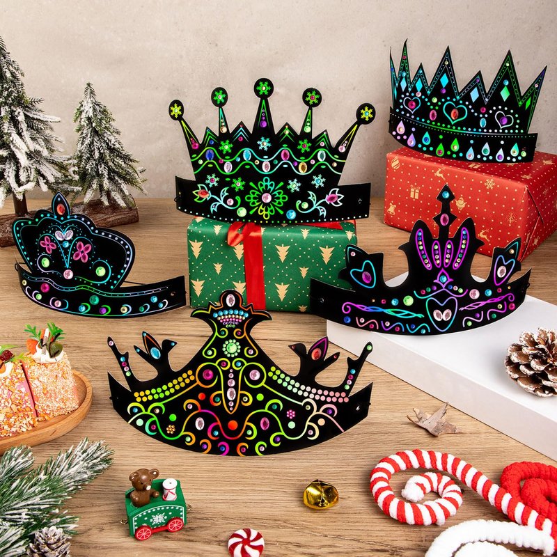 - Different Patterns: Christmas rainbow scratch mask includes 10 different designs of masks and comes with diamond stickers. You can design your own style of Christmas mask