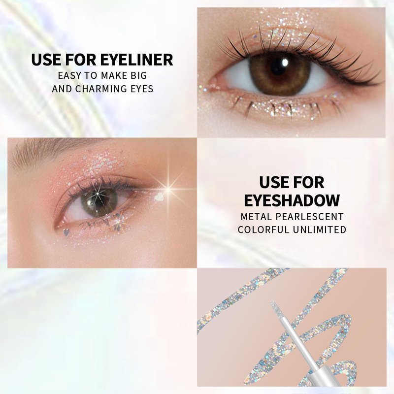 - 【Glitter Liquid Eyeshadow】The glitter liquid eye shadow designed for glitter & shimmer eyes looks which successfully spotlights the eye contour and make you be the attention-catcher in each event.