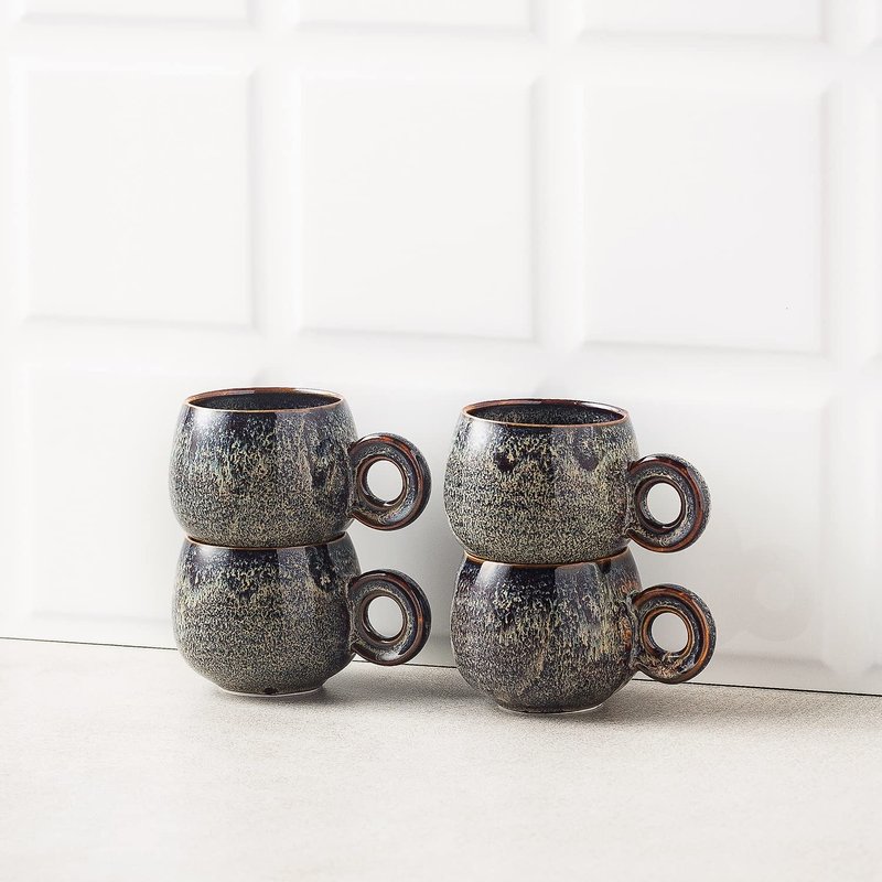KYBSCZ Ceramic Espresso Cups Set of 4, 3 Ounces Demitasse Cups, Porcelain Mini Coffee Cups, Small Ceramic cups set Made by Fambe Reactive Glaze,Caramel Gray