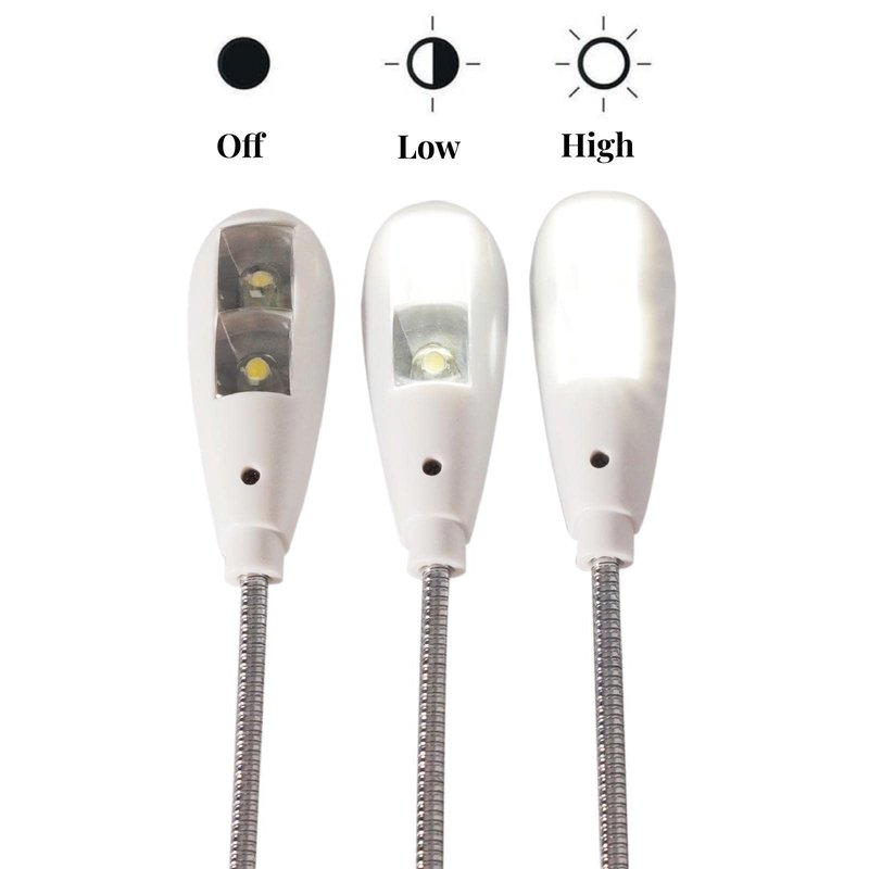 - 【Eye-care LED】This LED USB reading lamp is 2 brightness (Low/High) and with 2 high bright longlife span LEDS it will give you comfortable lighting just press the switch in the backside of the lamp head for setting.