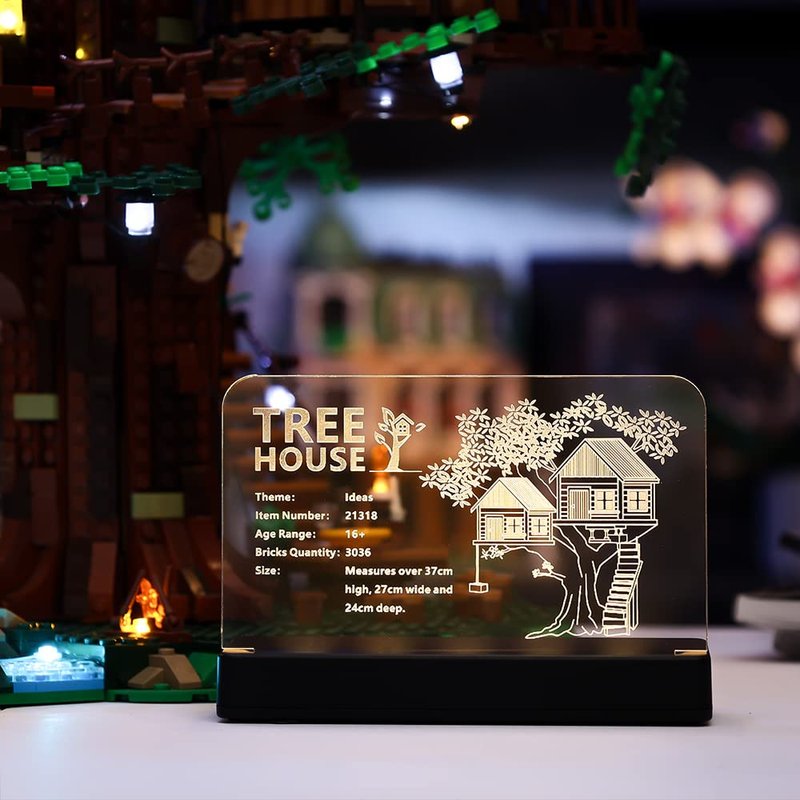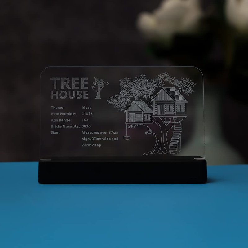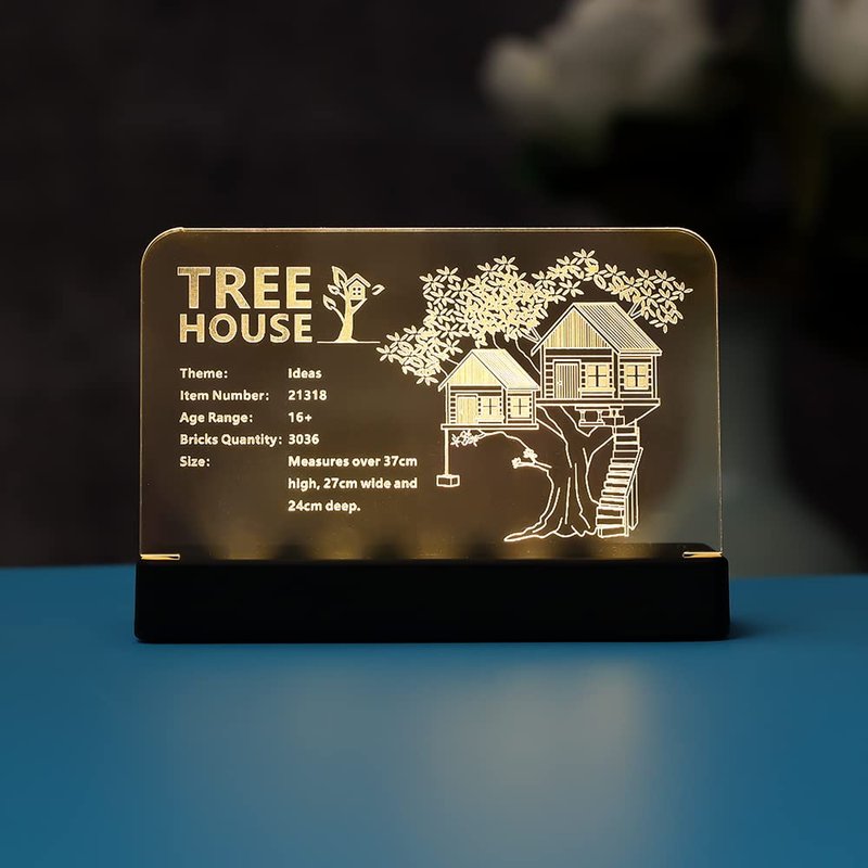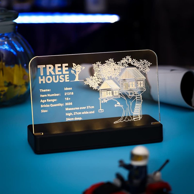 Kyglaring Glowing Clear Acrylic Name Plate with Power Base Designed for Ideas Tree House 21318 Building Set Sign Display (Glowing nameplate)