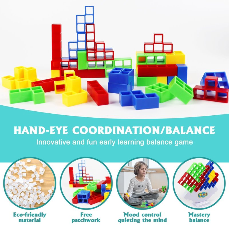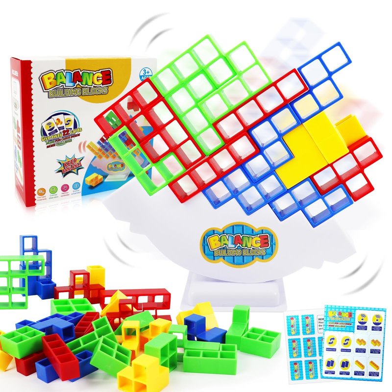 - 🧩 Two Player Balancing Board Games for Kids & Adults: The balance game building blocks is a fun and challenging stacking game. 1.Single-player challenge mode: Children stack balance blocks separately to exercise patience, balance, and cultivate a spirit of not giving up easily. 2.Fun two-player game mode: Take 22 game cards; Turn them to the back; Disrupting the order of the cards; Randomly draw a card; Follow the card's hints for the next step. Whoever gets the blocks down first loses.