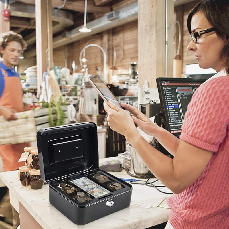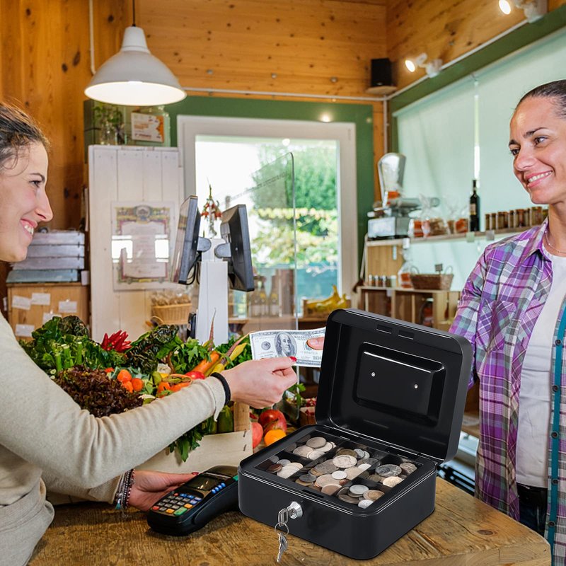 - WIDE APPLICATION:Lock box with key is suitable for indoor and outdoor small business,commercial supermarket,store,cafe use.Suitable to store bills, coins, checks and receipts.