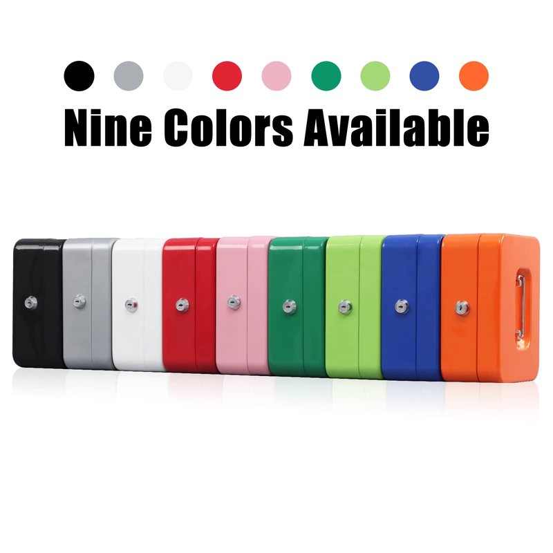 - HIGHLY QUALITY: Cash boxes is made of durable steel which is solidly built and can prevent it from drops and impacts.Equipped with a wide carrying handle, you can transport your locking cash box easily.