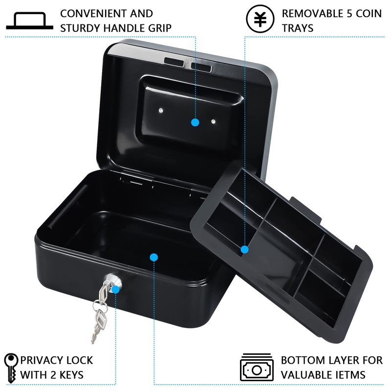 - PRIVACY AND SAFETY: Safe 2 Keys for Metal Petty cash box.Lock box has a privacy key lock to keep valuables safe.Either the box or the key is durable material quality that could be employed for a long time.