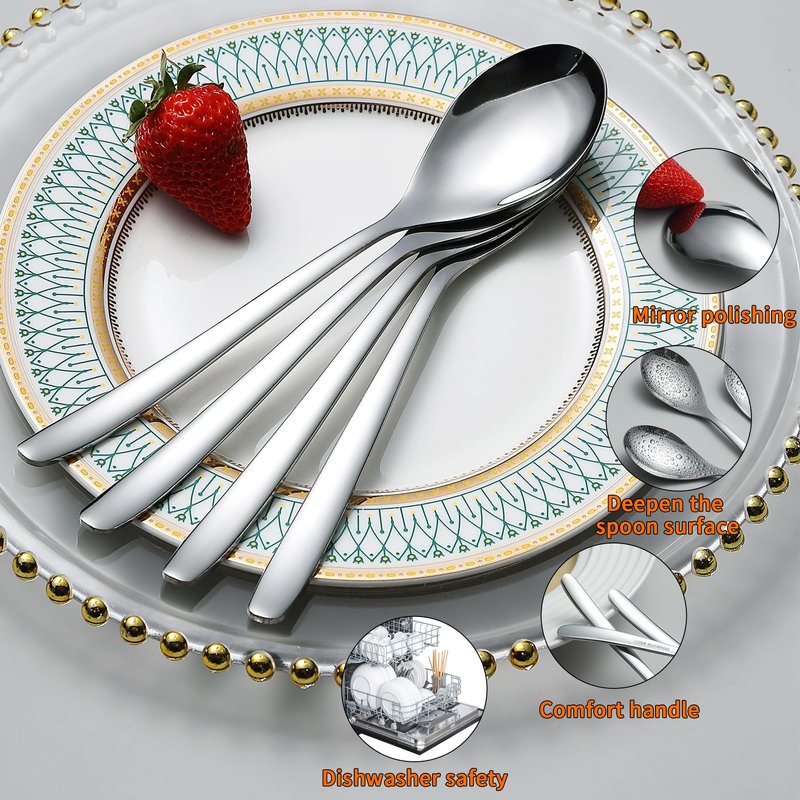 - The spoon is polished through multiple polishing processes to make it shiny like a mirror, with gorgeous texture and easy clean and dishwasher Safe