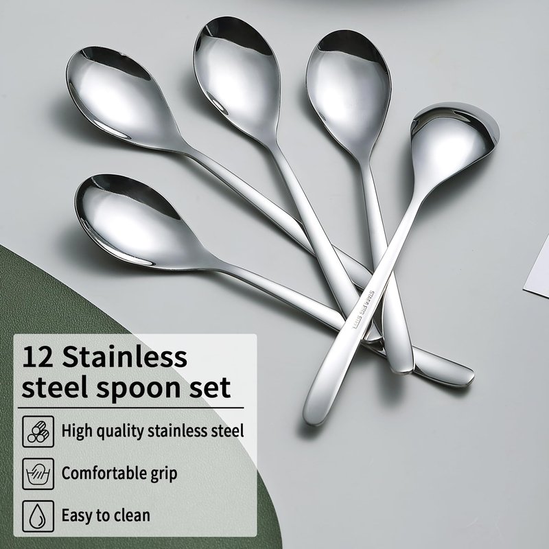 - Set of 12 pieces Dinner Spoons : These stainless steel Dinner Spoons pack of 12 pieces heavy duty and durable.