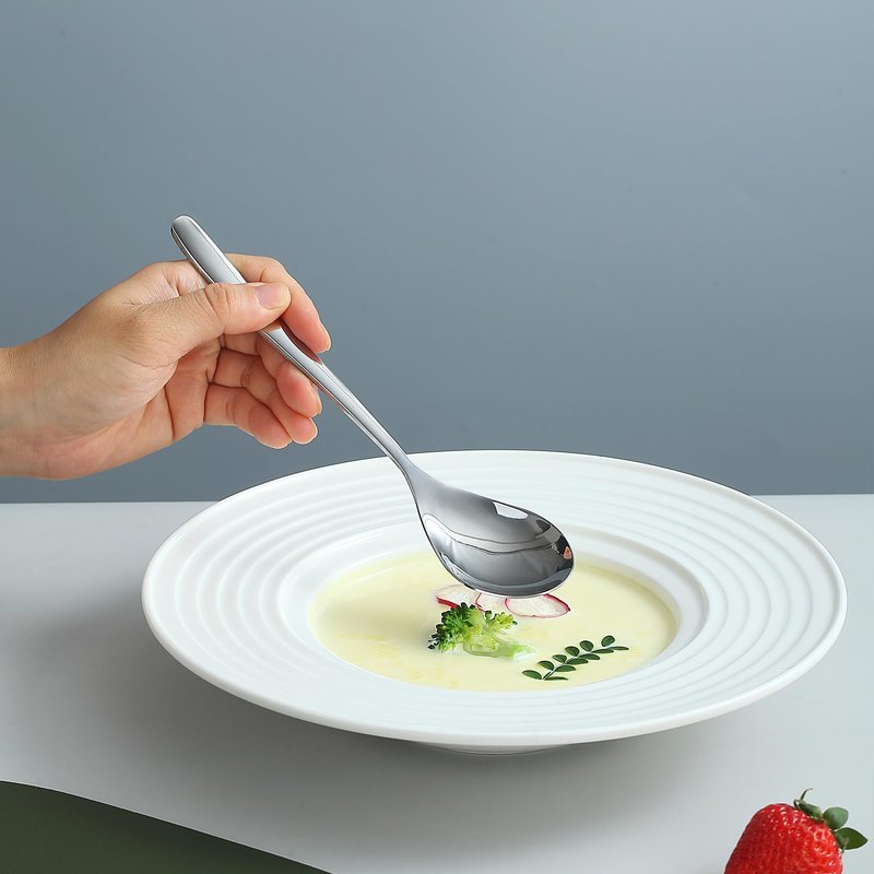 - Timeless elegant design makes this silverware appropriate for formal events, parties, Wedding, Birthday or everyday meals. These dinner spoons have a nice weight and size to grip comfortably.