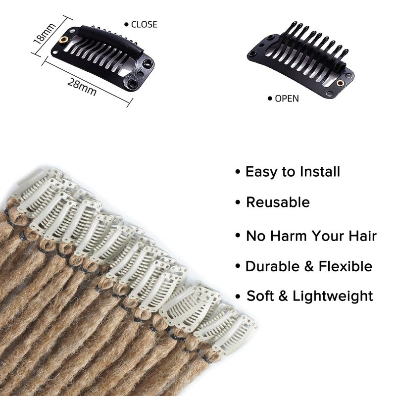 - 【Highlights】Our clip-in dreadlock extensions are handmade from synthetic hair in high quality. The synthetic dreads are lightweight, soft, flexible, and very durable. Easy to install, Reusable. The type of clip-in hair extensions will make you more beautiful, fashionable, and sexy, just like your natural hair does.