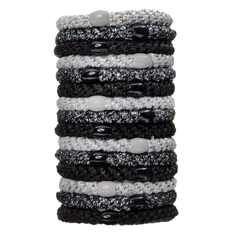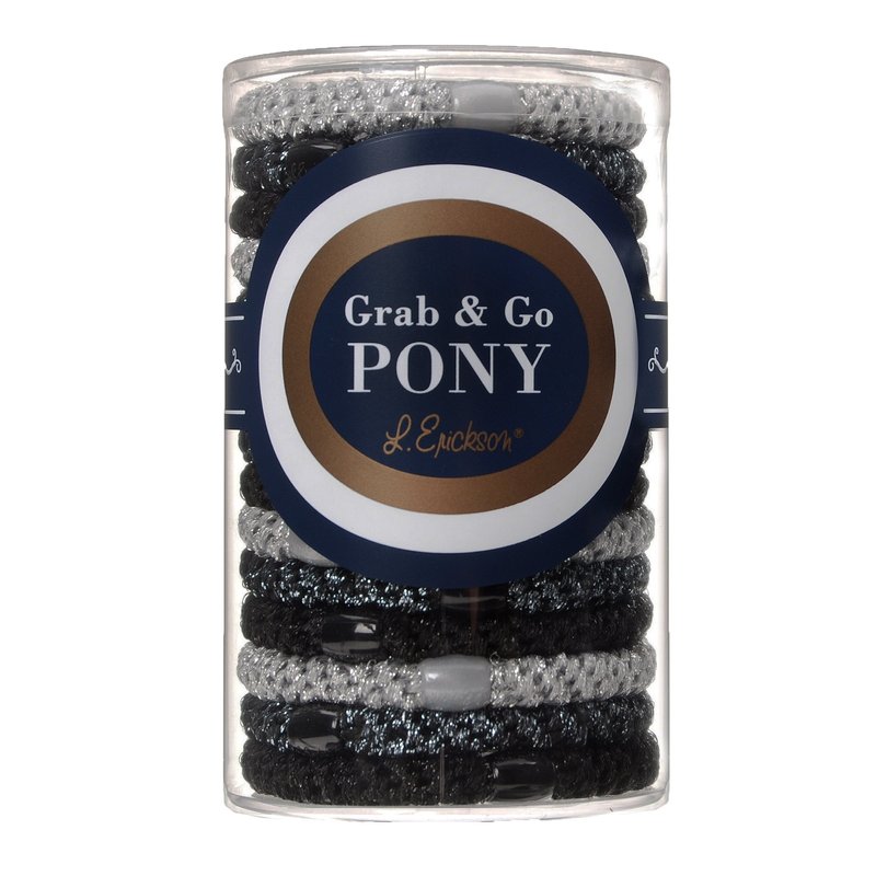 L. Erickson Grab & Go Pony Tube - Black Metallic - 15 Pack Ponytail Holder Hair Ties