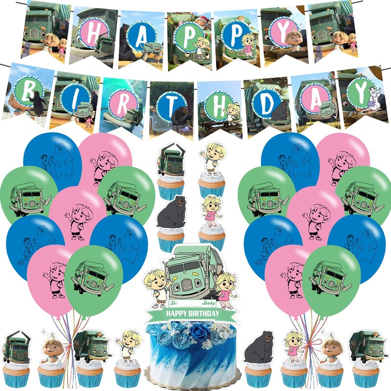 La Babite Trash Truck Party Decorations,Birthday Party Supplies For Trash Truck Includes Banner - Cake Topper - 12 Cupcake Toppers - 18 Balloons
