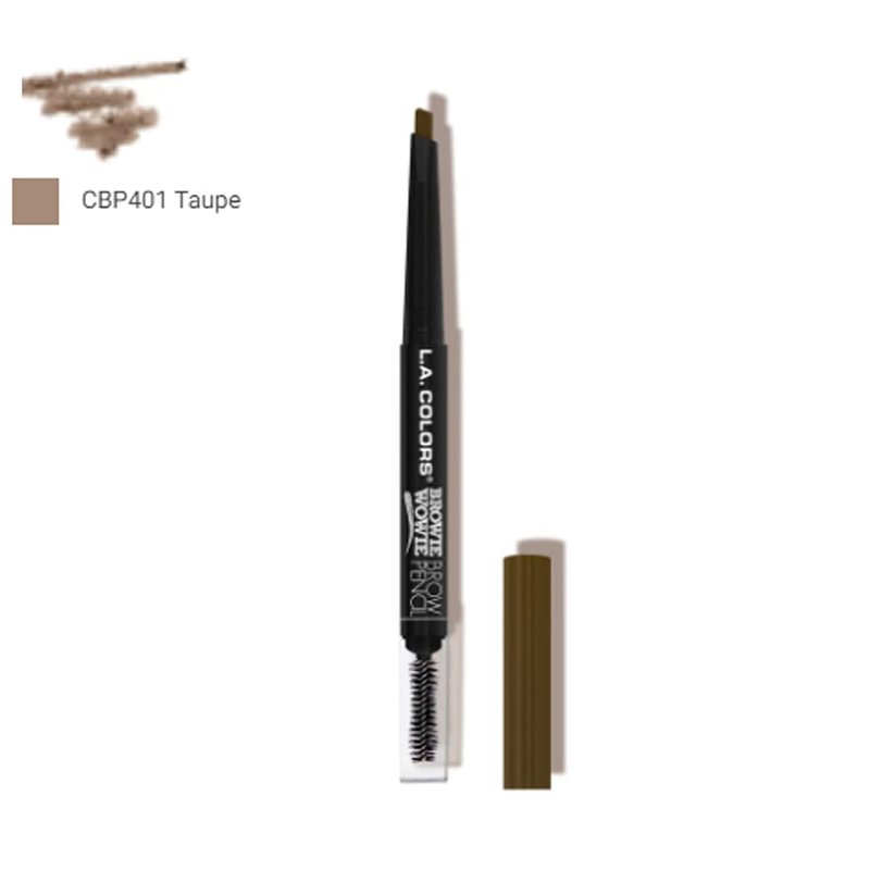 L.A. Colors 1 Browie Wowie Brow Pencil [ CBP401 TAUPE ] Eyebrow Eye Brow + Free Zipper Bag+ Add definition to brows with the slanted retractable brow pencils. Slant-tip brow pencil easily fills in brows for a natural looking finish- complete with spoolie.
