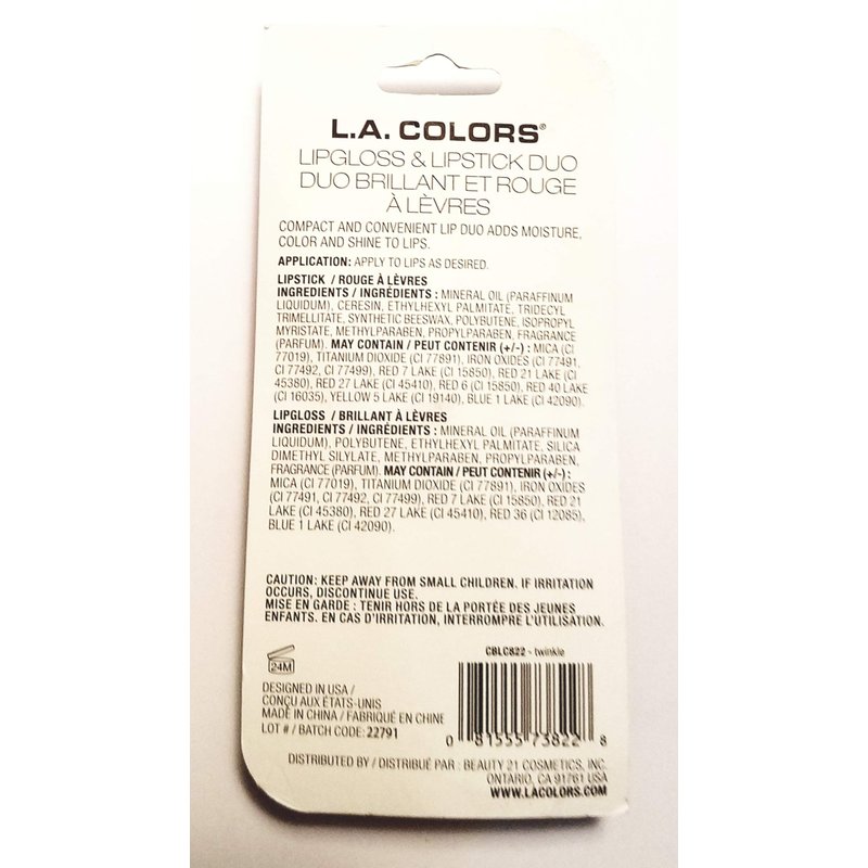 LA Colors Lip Gloss & Lipstick Duo, Moisturizes lips with natural color & high Shine, BLC822 Twinkle