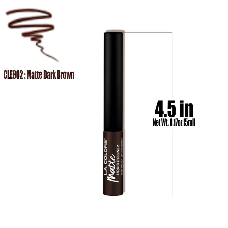 L.A. COLORS Pick 1 Liquid Eyeliner Fine Tip Brush Eye Liner + Free Zipper Bag (CLE802 Matte Dark Brown)