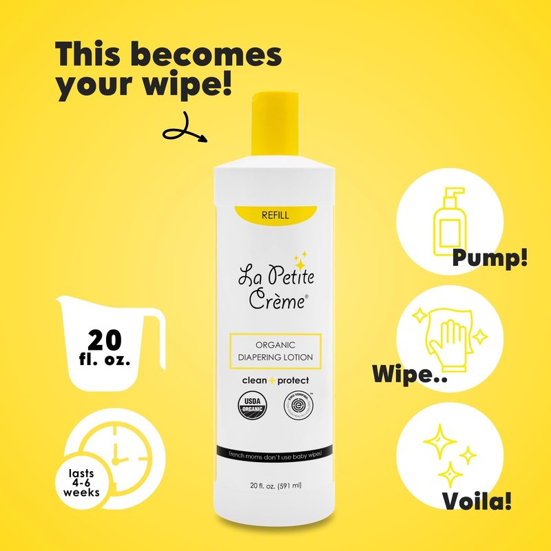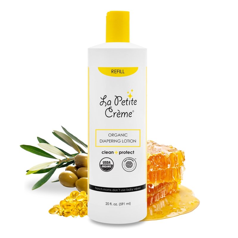 La Petite Creme French Premium Diapering Lotion - Diaper Cream Alternative to Baby Wipes - Gentle Moisturizer & Skin Cleanser with USDA Certified Organic Ingredients - Baby Essentials (20 oz)