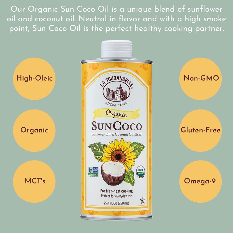 La Tourangelle, Organic Sun Coco Oil, Unique Blend of Organic High-Oleic Sunflower Oil and Organic Refined Coconut Oil, Heat Heat Cooking and DIY Beauty, 25.4 fl oz