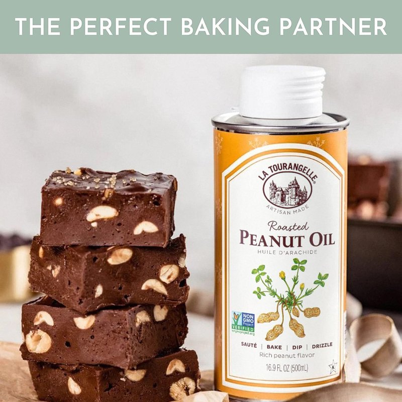 La Tourangelle, Roasted Peanut Oil, Slow Roasted Expeller-Pressed for Rich Flavor, Perfect for Cooking & Baking, Med-High Heat, Unrefined, Small Batch Production in USA, 16.9 fl oz