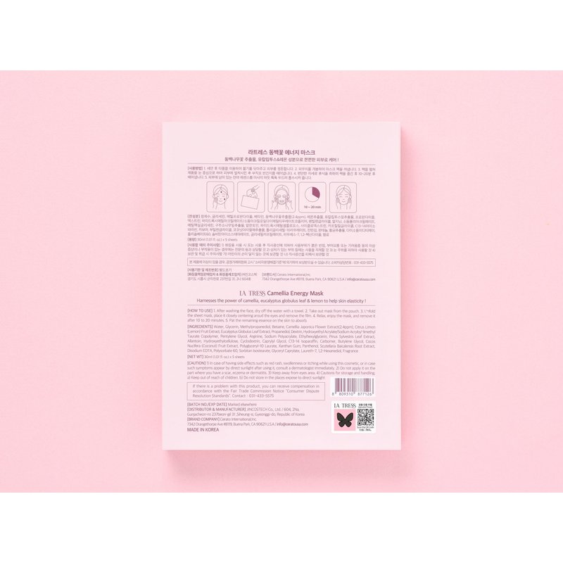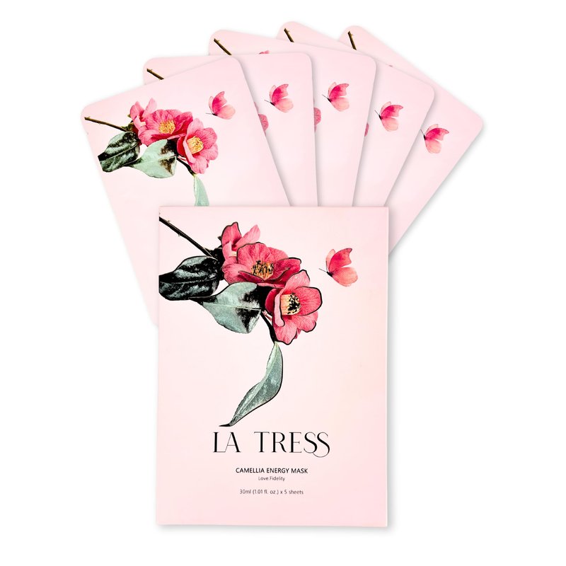 LA TRESS Camellia Energy Korean Face Mask, Korean Beauty Skin Care (5 Sheets)
