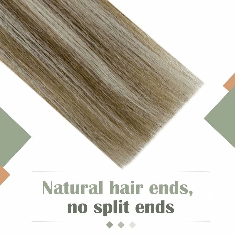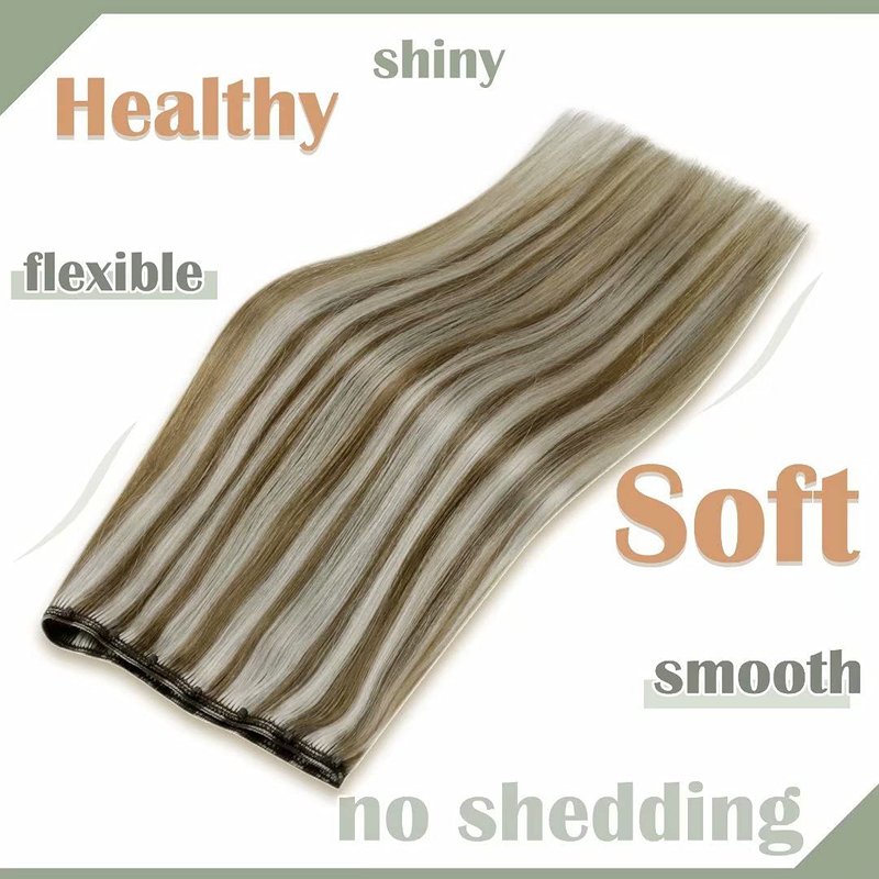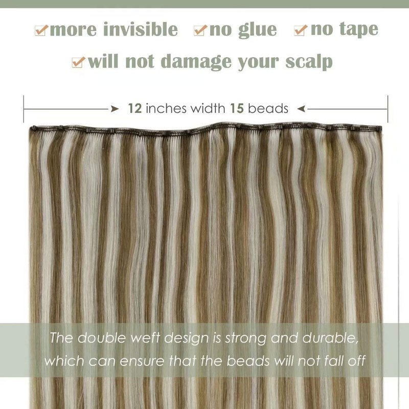 LaaVoo Beaded Weft Hair Extensions Real Human Hair Light Brown Highlight with Platinum Blonde Micro Beaded Weft Extensions Human Hair EZE Weft Human Hair Extensions 50g 18"