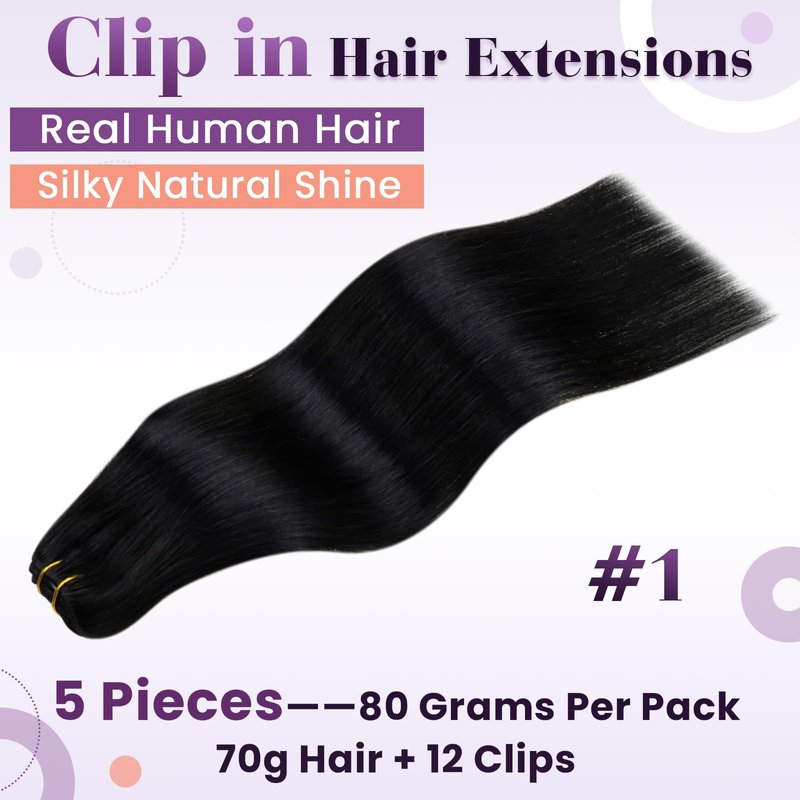 - Style: Straight Black Real Human Hair Extensions