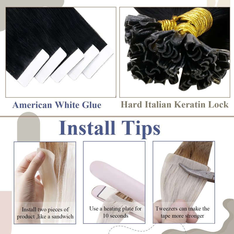 - 【LAAVOO & Maximum Hold-tapes】We use professional American white glue in order to maintain the adhesion of the tapes and avoid falling off. We send replacement tapes with each pack of hair. It is quick and easy to install and doesn't require daily take off and easily removable and re-useable. It’s no wonder LAAVOO Tape in hair extensions have been welcomed by hair professionals and clients alike.