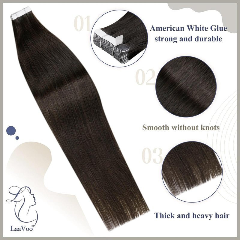 - 【LAAVOO & Versatility in Style】Tape in Hair extensions of LAAVOO come in various colors and length. They can be styled to create different looks just like your own hair , from everyday wear to special events, show off your beauty on different occasions. With tape in hair extensions, you can also easily go from short or fine hair to long and thick locks that look completely natural. Making you more confident is also what LAAVOO is always looking for.