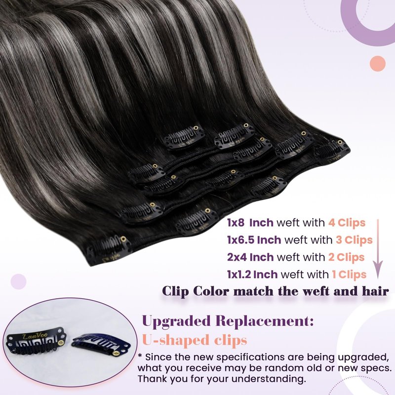 - [Upgraded Packaging and Replacement Clips] Each pack of LaaVoo Clip in Hair Extensions will contain two replacement clips in the future. Since it is still upgrading, what you receive may be random old or new specs. The packaging of LaaVoo hair extensions clip ins is complete and clean, with untorn sealing stickers. To avoid receiving resale products, please tear off the box after the product is used.