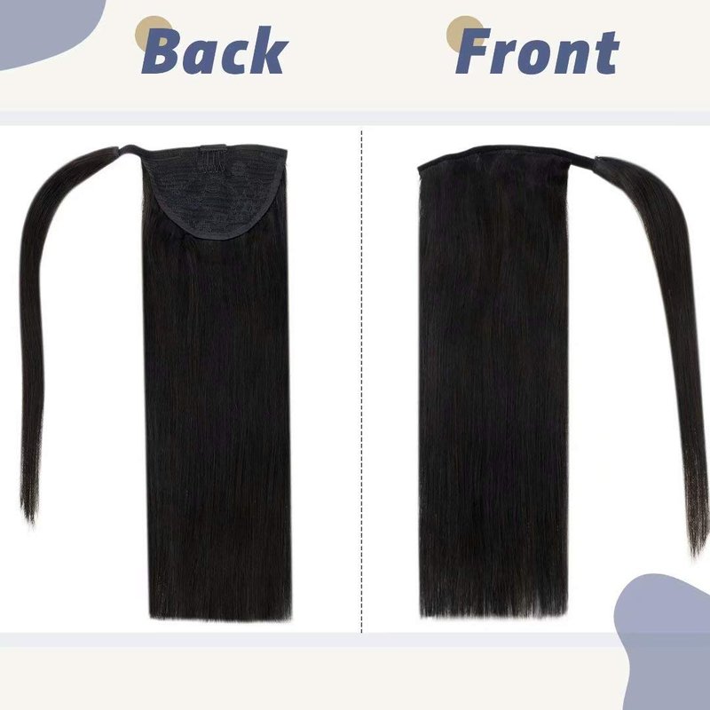- 【Easy Install & Unique Design】The black hair extensions ponytail comes with an easy install clip-in comb and magic paste. It's easy to use! Just wrap it around your ponytail and clip in to get that instant length. Say good bye to the long bored waiting for natural hair growth!If your original hair volume is too small, it may cause the ponytail to slip off because of heavy weight.And use bobby pins if needed to secure.