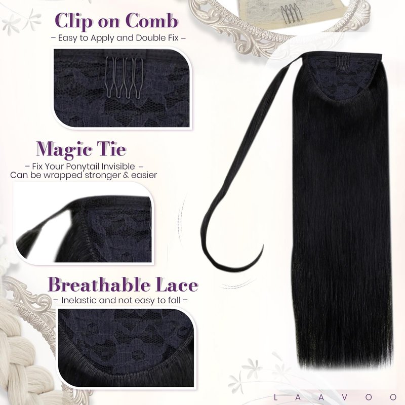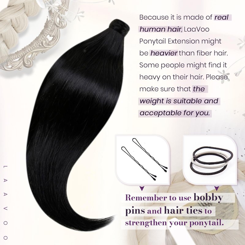 - 【Suitable for any occasions】 LaaVoo clip in black ponytail extension is perfect for dating, daily use, party, concert, wedding, sport, holiday...etc. Healthy with vatural hair shine, and change your hair style to be energetic and neat.