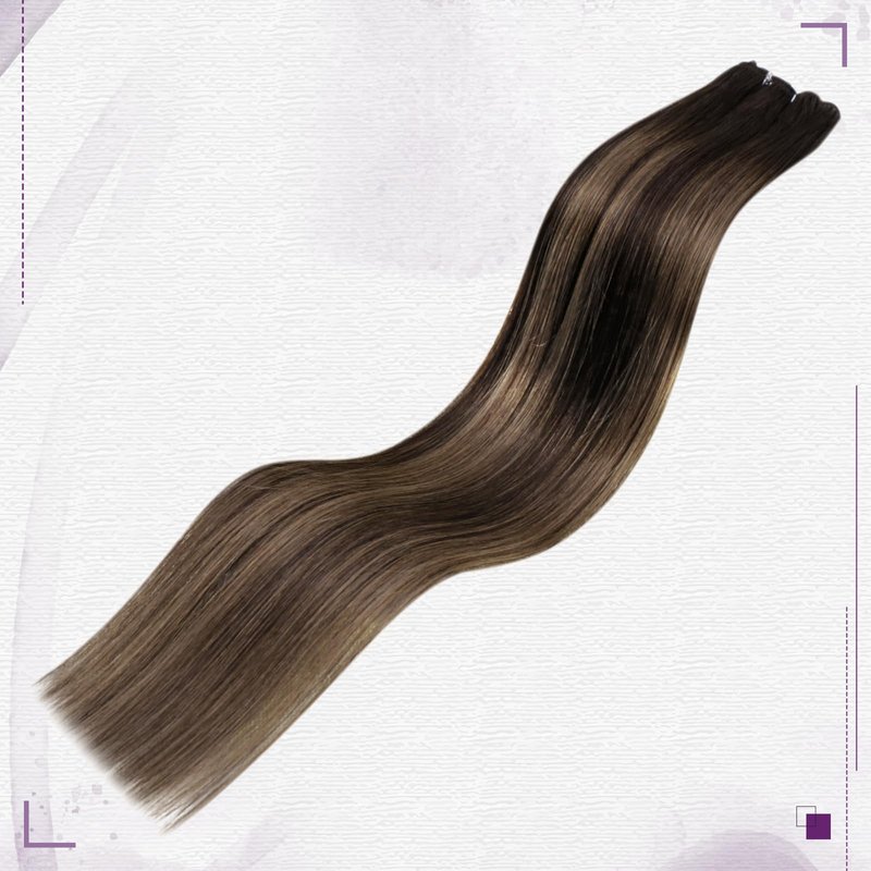 LaaVoo Micro Beaded Weft Hair Extensions Real Human Hair Balayage Darkest Brown Ombre Light Brown MicroBead Weft Hair Extensions Silky Straight Easy Weft Extensions Human Hair 16 Inch 50g