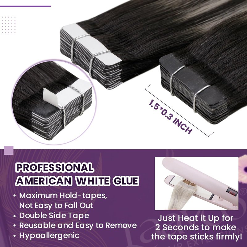- Hold-Tapes:No worries about tapes slipping off! We utilize professional American white glue for good adhesion. Each pack of our tape in extensions human hair includes replacement tapes, allowing for an easy installation and removal process,requires only simple routine maintenance. Reuse is also possible with our extensions