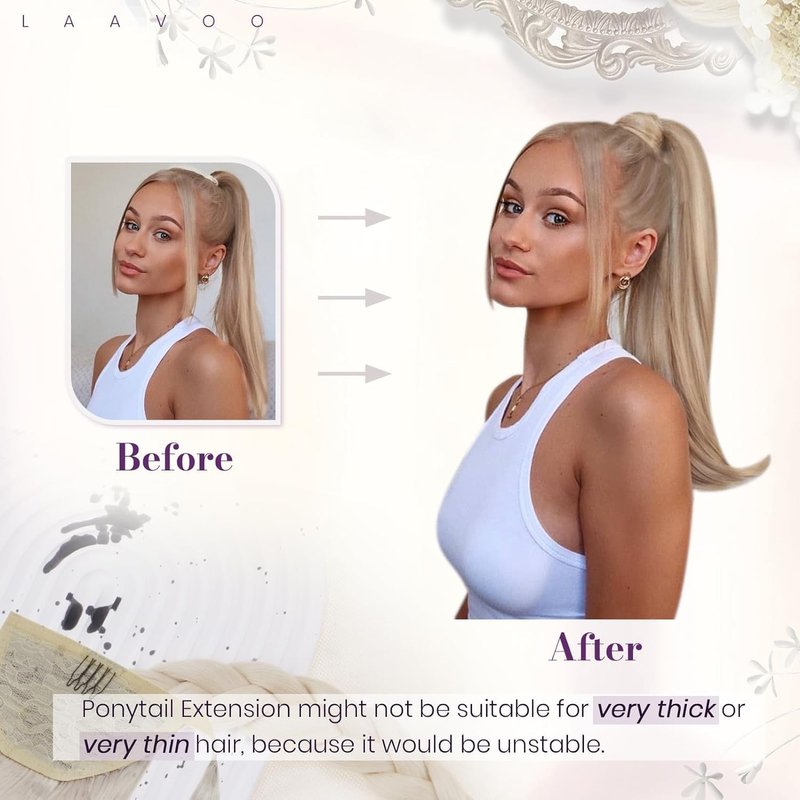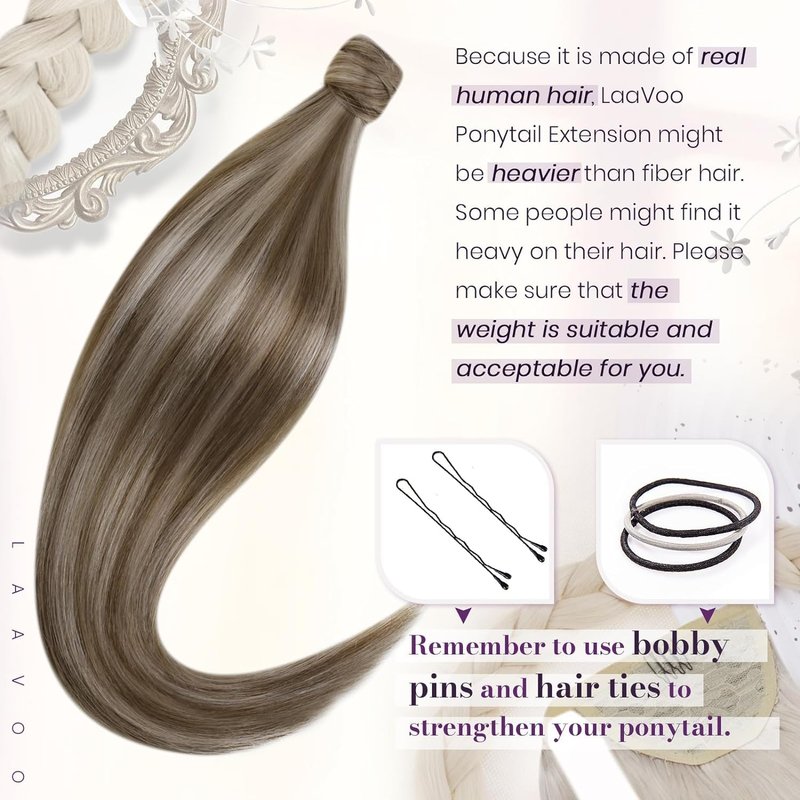 - 【Warm Tips Before Ordering】LaaVoo ponytail extension human hair may not suitable for someone who has short or thin hair that has not enough hair to support the weight of the ponytail extension, please choose the right length and weight according to your hair density.