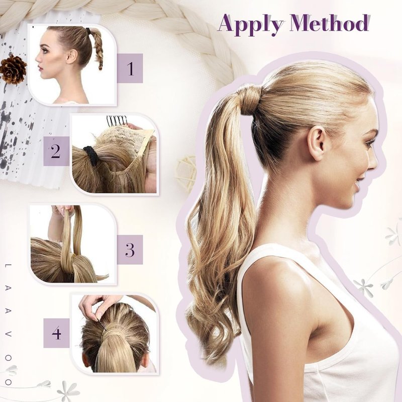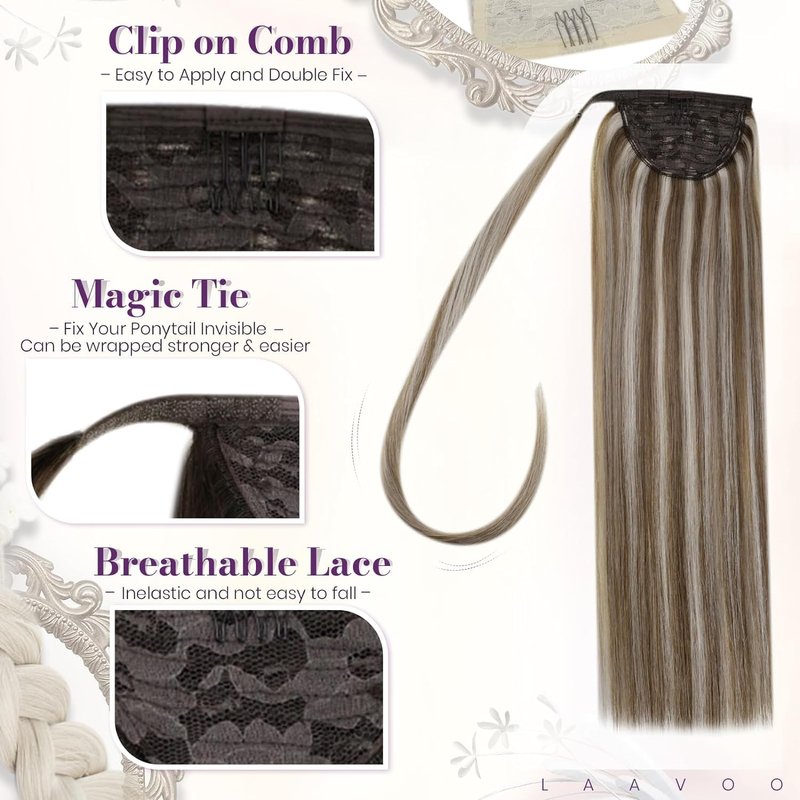 - 【Convenient for any occasions】LaaVoo human hair ponytail extension is perfect for dating, daily use, party, concert, wedding, sport, holiday and so on. Healthy with natural hair shine, and change your hair style to be energetic and neat. Just use seconds to wrap it around your ponytail and say good bye to the expensive hairdressers!