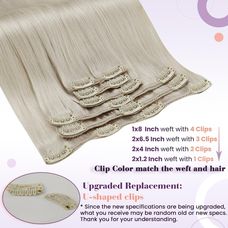 - [Upgraded Packaging and Replacement Clips] Each pack of LaaVoo Clip in Hair Extensions will contain two replacement clips in the future. Since it is still upgrading, what you receive may be random old or new specs. The packaging of LaaVoo hair extensions clip ins is complete and clean, with untorn sealing stickers. To avoid receiving resale products, please tear off the box after the product is used.