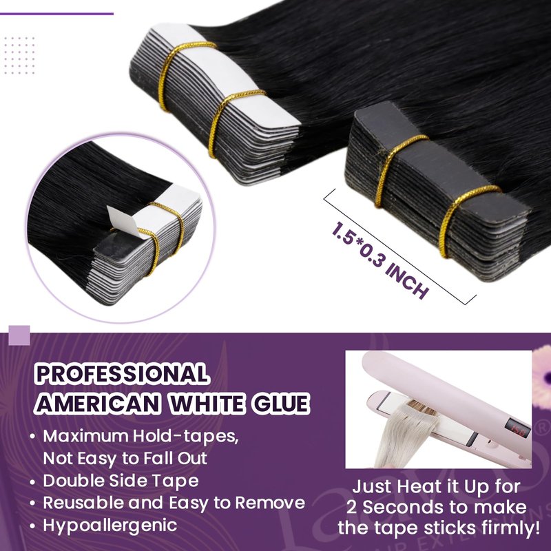 - 【LAAVOO & Maximum Hold-tapes】We use professional American white glue in order to maintain the adhesion of the tapes and avoid falling off. We send replacement tapes with each pack of hair. It is quick and easy to install and doesn't require daily take off and easily removable and re-useable. It’s no wonder LAAVOO Tape in hair extensions have been welcomed by hair professionals and clients alike.