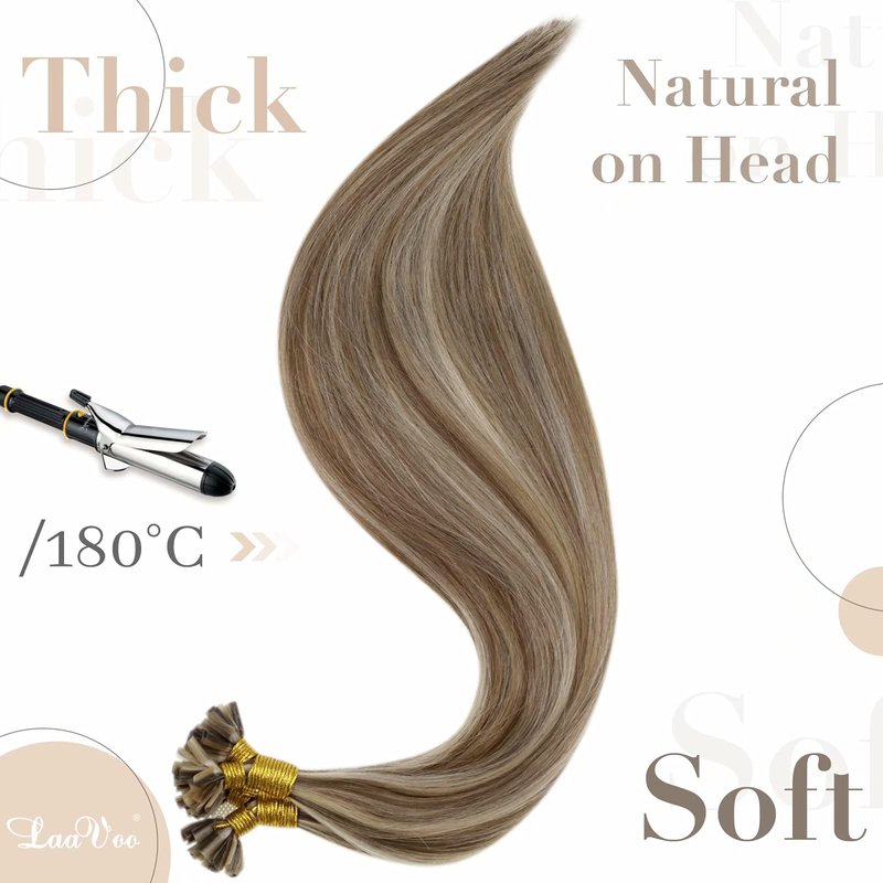 LaaVoo U Tip Hair Extensions Real Human Hair Utip Extensions Human Hair Highlight Ash Brown with Light Blonde Stick Tip Hair Extensions Blonde Pre Bonded Keratin Extensions 18 Inch 50g/50s