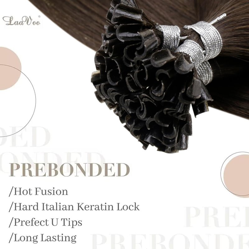 - 【U Tip】LAAVOO Hair Extensions U Tip has a "u" shape, and you place your natural hair into the middle of the"u". The u-tip of the root is made from Italian keratin tip, which is hot-melt and easy to stick on the hair by using a heating element.