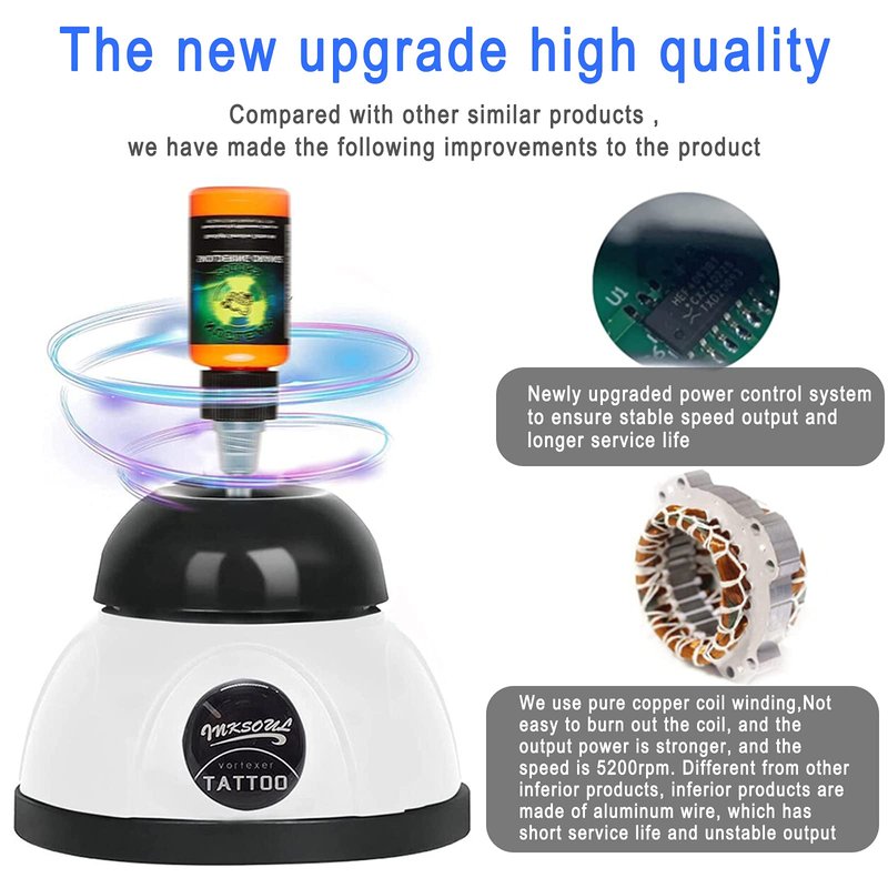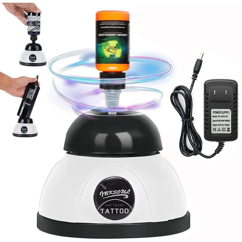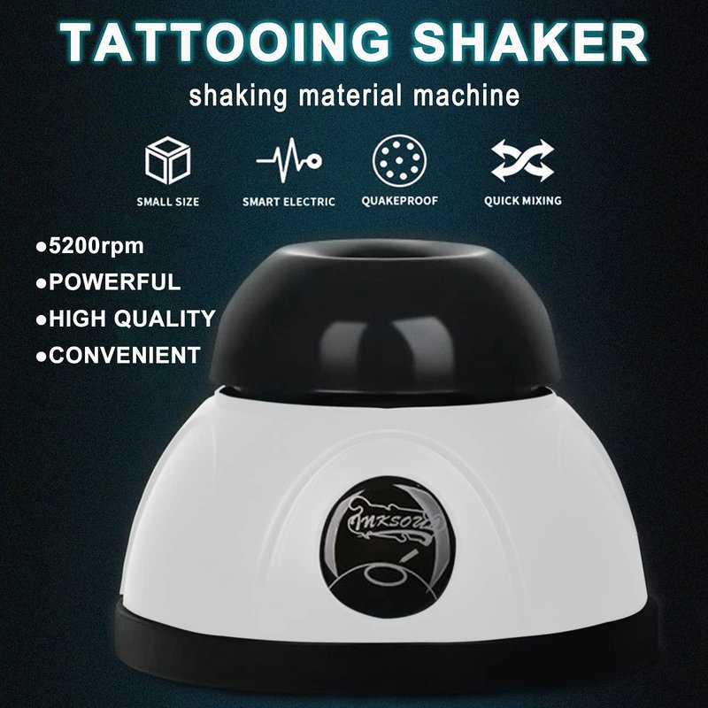 - High-quality quality: The black rubber head and high-quality chemical-resistant plastic mixer housing are the perfect combination of simplicity, fashion and durability. The heavy-duty zinc-aluminum alloy base ensures that the mixer will not swing when it is working. The foot pad design can fix the mixer in place during the mixing process. The size is 4.3 * 4.3 * 3.3 inches, which can save valuable desktop space and is convenient for you to take it with you when you tattoo.