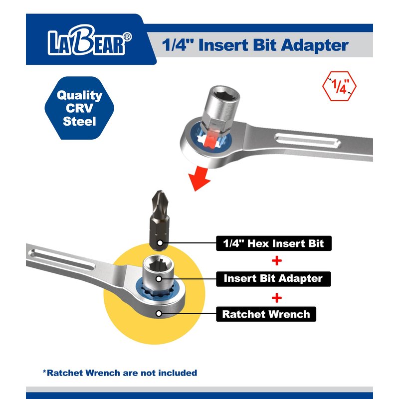 - 【Multifunction】 Converts ratcheting wrench into super-thin ratchets or ratcheting bit drivers.