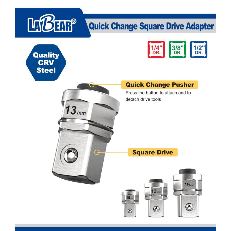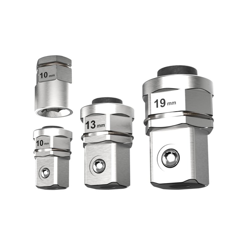 - 【Includes】3 pc. Metric Drive Adapter set includes - (1/4" x 10mm), (3/8" Dr. x 13mm), (1/2" Dr. x 19mm) For Socket & 1pc. (1/4" x 10mm) For Bit.