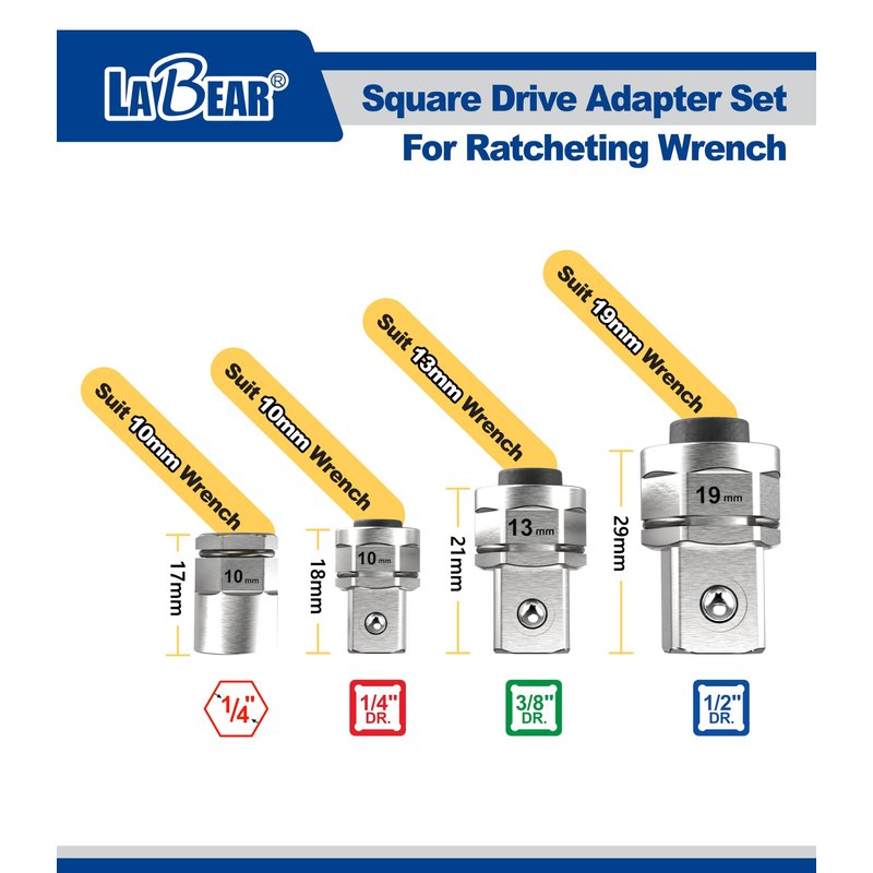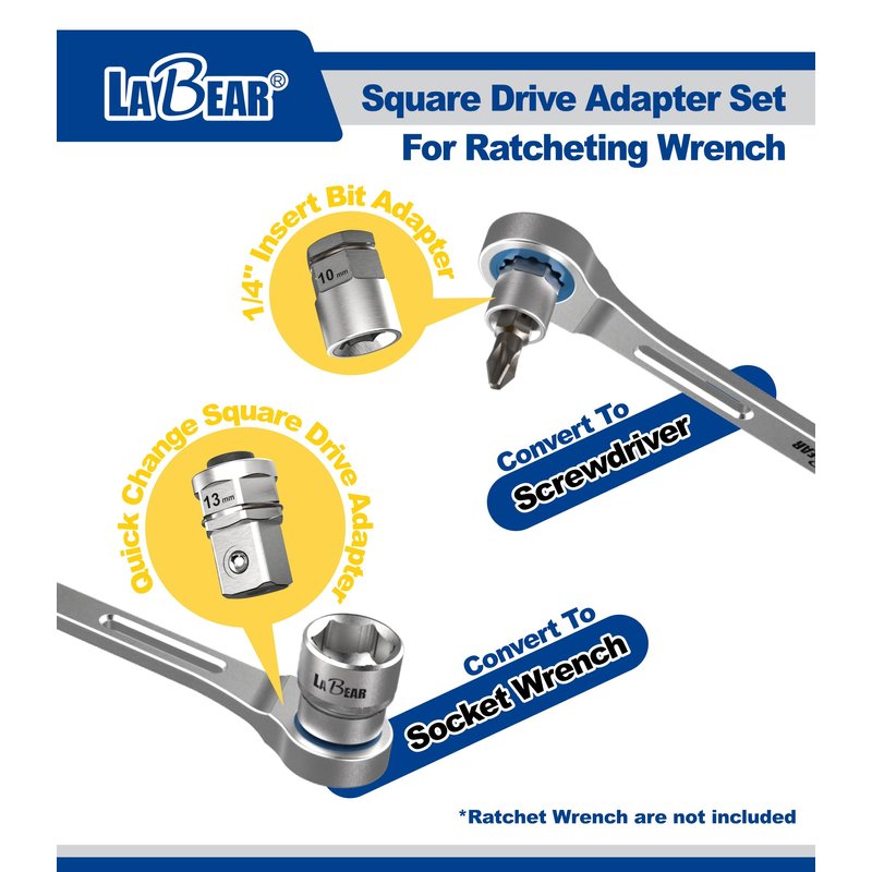 LABEAR- 4pcs socket wrench adapters, Ratcheting Wrench to Square Drive Adapter Set