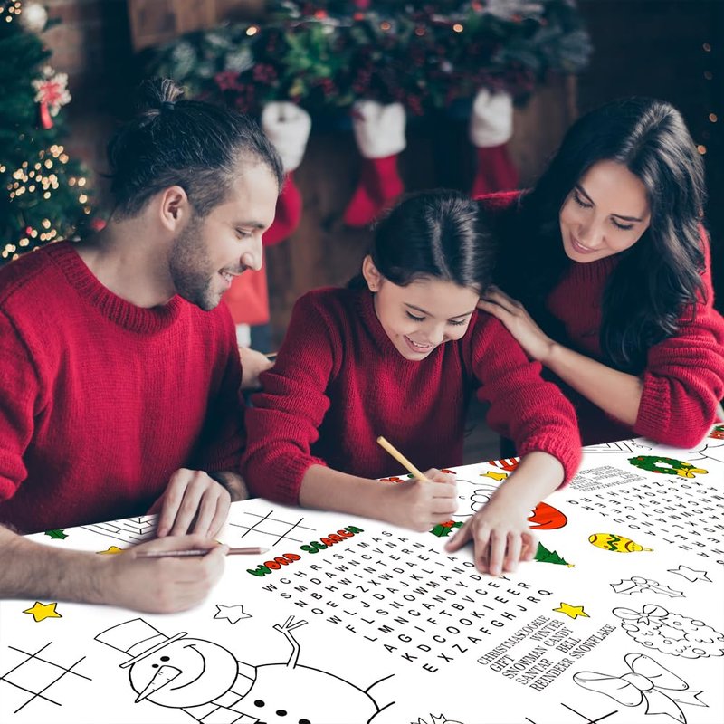 - 🎄【Creative Design】The Christmas decorations include 1 pack Christmas coloring paper tablecloth. The Christmas paper tablecloth printed with santa claus, snowmen, mazes, word search games, mazes, tic tac toe, presents, stars and more! The patterns and games on the Christmas coloring tablecloths can stimulate children's interest and help to develop their creativity.