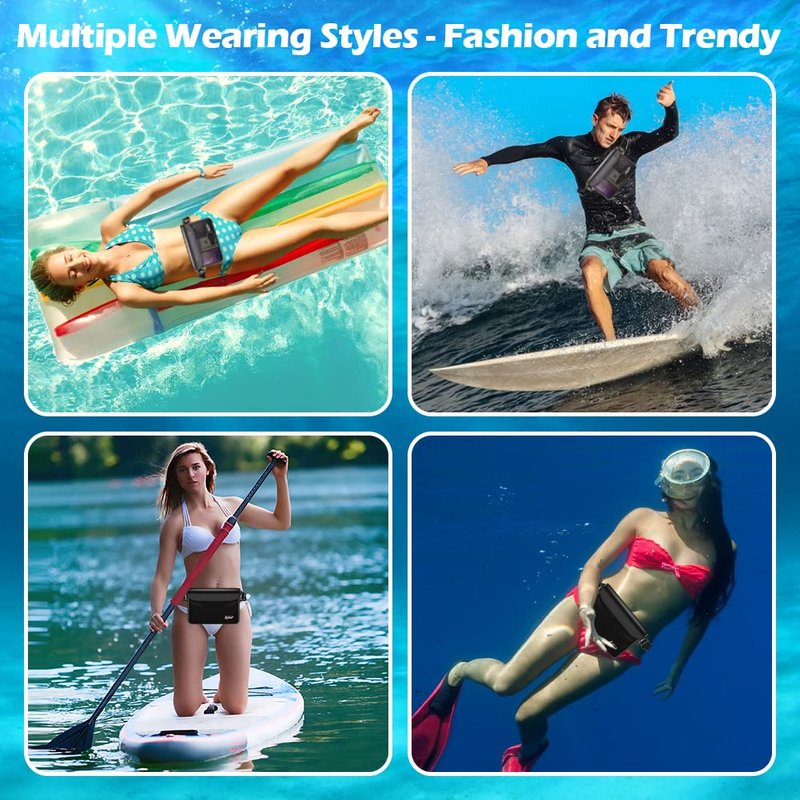 - 📱【Touchable Screen】Waterproof fanny pack with humanized design, you can operate the phone directly without taking it out (except for the black,because the black is opaque), the screen is sensitive to touch, making it easy to browse and reply to messages. Providing convenience while protecting the phone from getting wet. Enjoy water sports to the fullest!