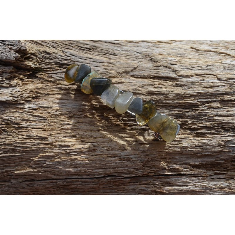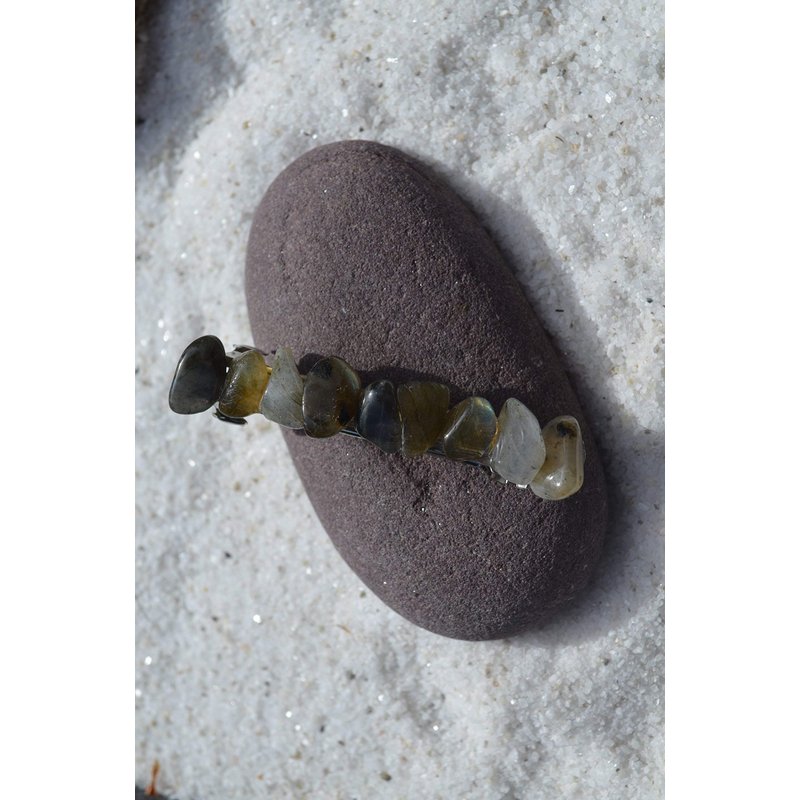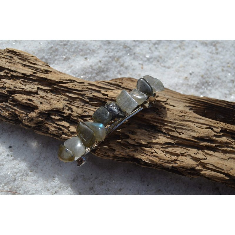 Pretty labradorite stone french barrette, the stones have a gorgeous coloring. The stone french barrettes adorned with small labradorite stones. The labradorite stone hair clip is the perfect accessory for a night out, and can dress up an outfit or be used for a special event, like a quinceanera, first communion, or even a wedding. The hair clip is hand made in the USA and come from a smoke free environment The turritella stone hair clip measure: 61 mm x 16 mm x 15 mm or 2.4 inches x .6 inches x .57 inches.